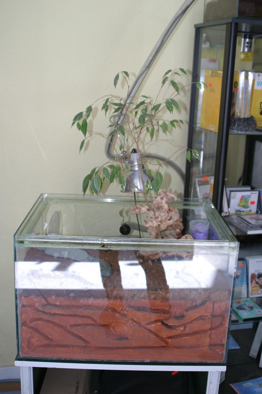 Ganz unten ist übrigens das fertige Becken mit Besatz. Hinten geht ein Schlauch in ein Becken auf einer Vitrine als Auslauf :) In den Schlauch habe ich einen