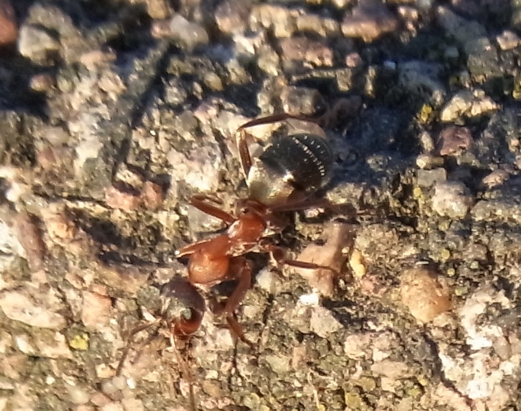 Scheinbar eine Formica Art, doch was genau, diese rötlichen Ameisen gibt es hier in der Umgebung überall.