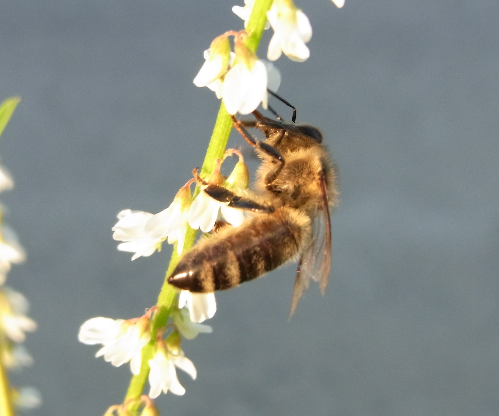Nicht nur Ameisen gab es zu entdecken, Hier eine Hummel auf dem Boden, zu schwach um neu zu starten. Auf dem Foto kann man am Hinterleib zwischen der Behaarung etwas sehen was wie Parasiten ausschaut.