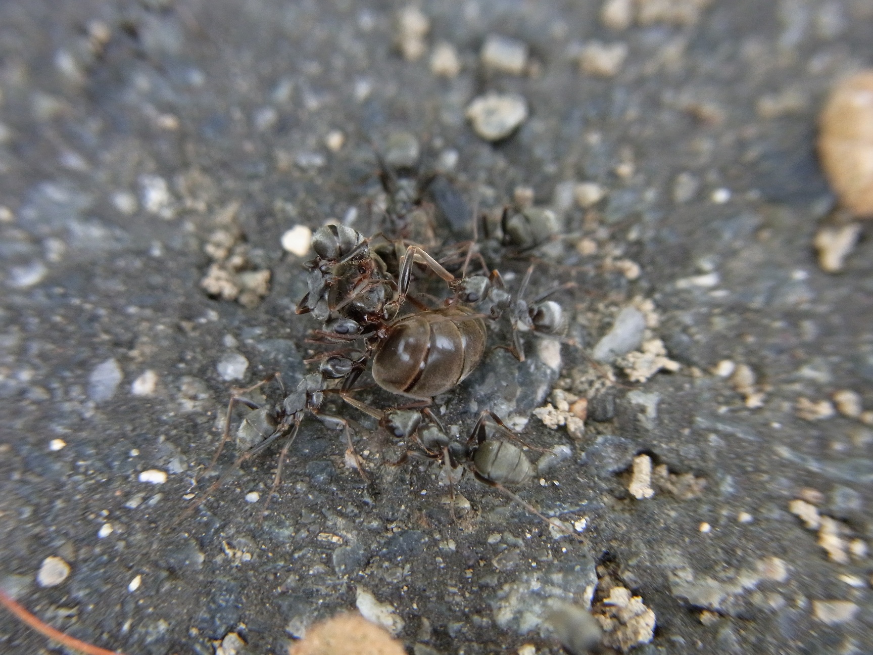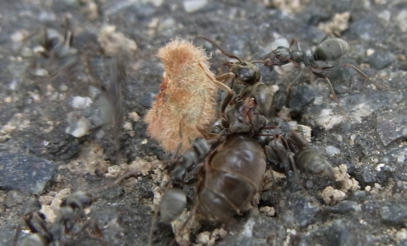 Lasius niger waren heute überall unterwegs, nicht nur der Ameisenfreund freut sich über solch einen Fund, andere Ameisen lassen sich dieses "Fastfood" nicht entgehen.