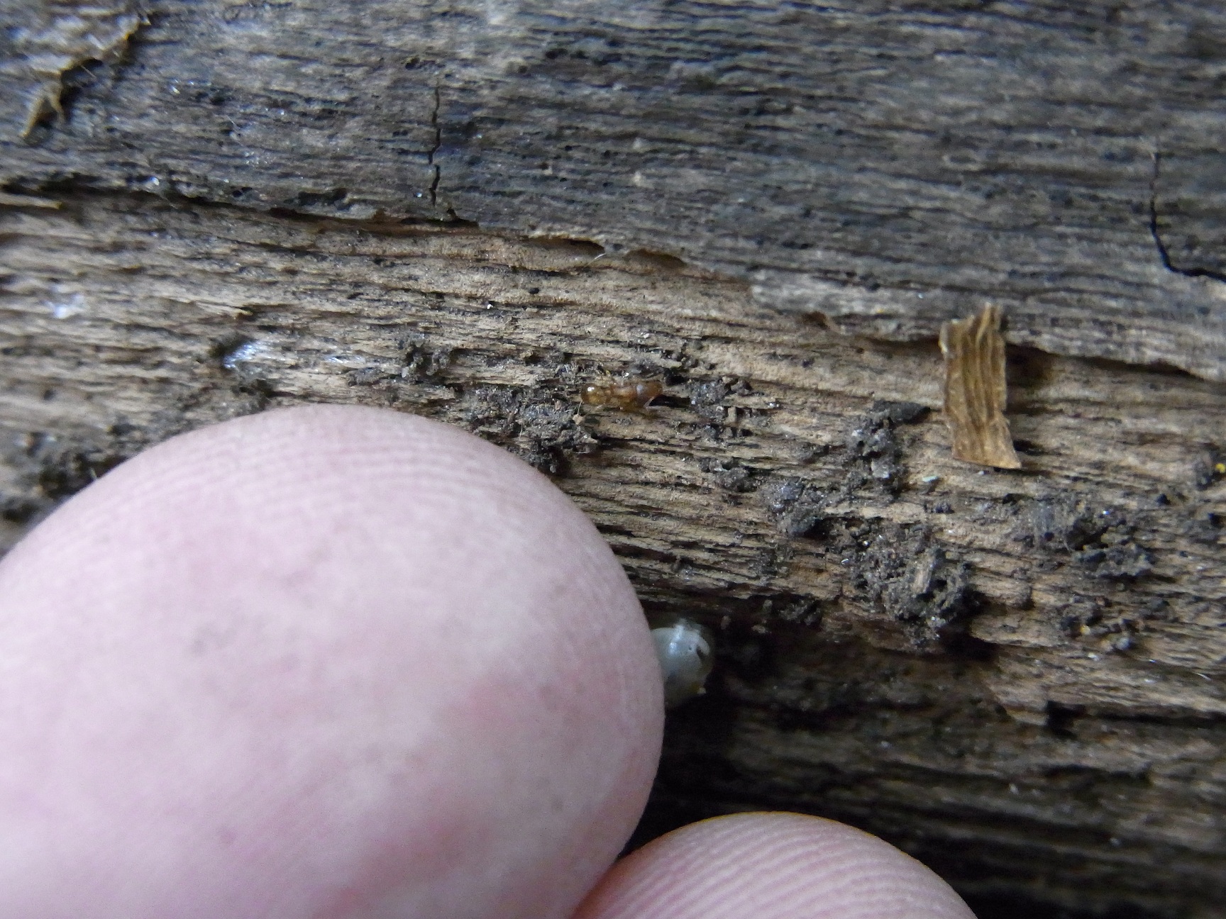Natürlich war ich auf der Suche nach Ameisen. Der gesamte Waldboden war aber ameisenfrei, sicher auch durch das Wasser. Ein Erdnest wird einfach überflutet, was den Tod der Kolonie bedeuten kann. Nur an alten Stämmen und Bäumen konnte man Knotenameisen in allen Größen finden.