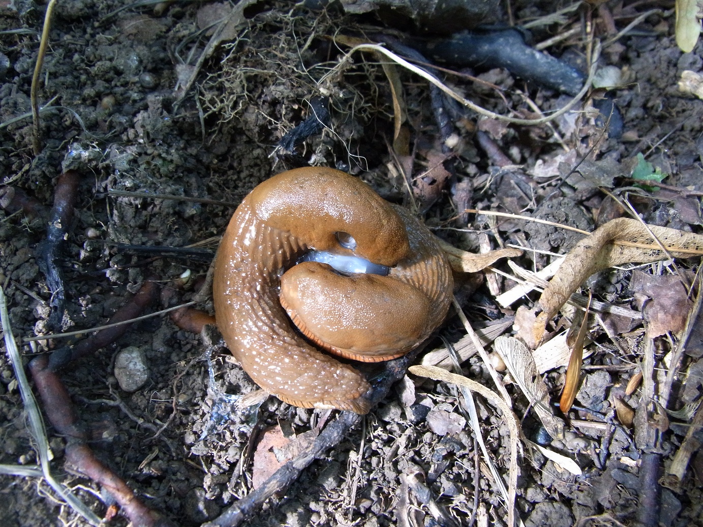 große Nacktschnecken bei der Paarung... echt eine klebrige Angelegenheit