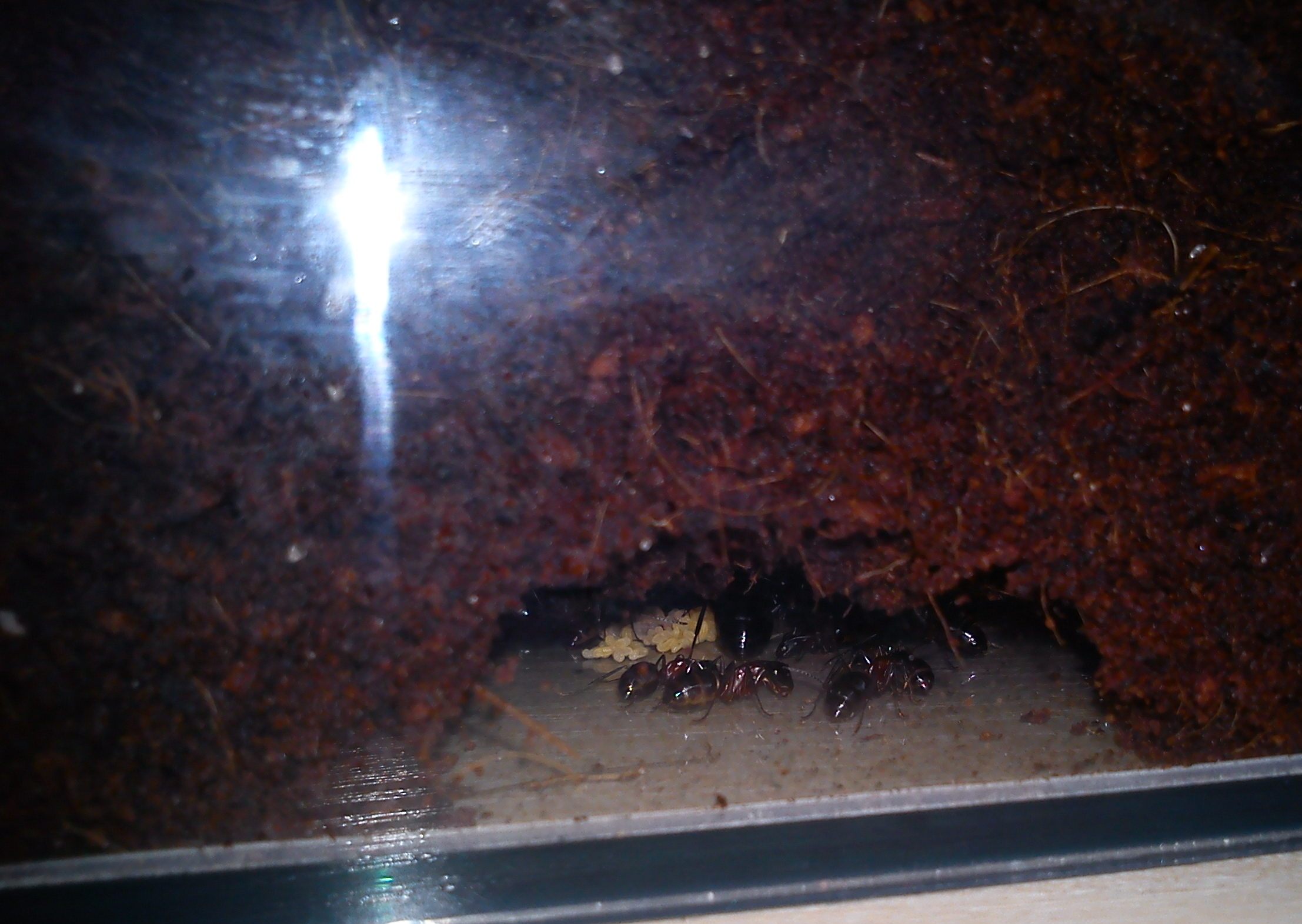 As some of you may know my old Camponotus ligniperdus had died, so I bought a new colony, this time with approx 80 ants. I received them today and they seem to be settled in nicely. They eat honey and now have found the y-tong nest.