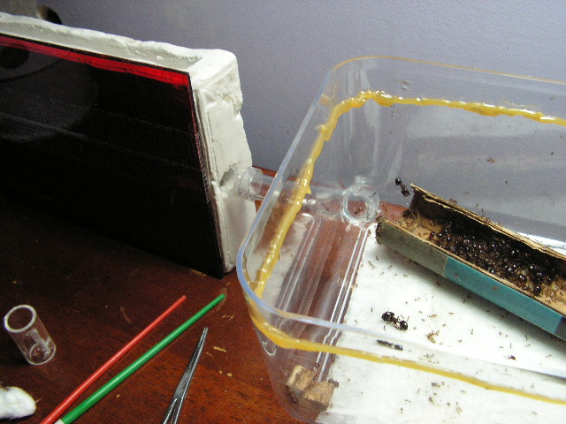 Adding the workers to each gypsum nest , One tube to each nest 8)