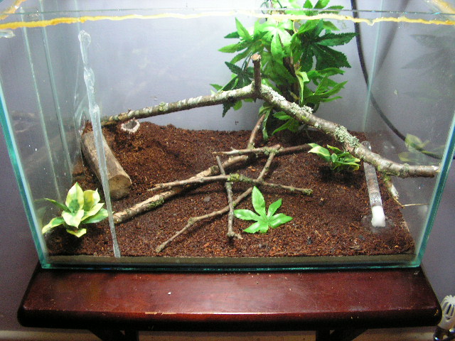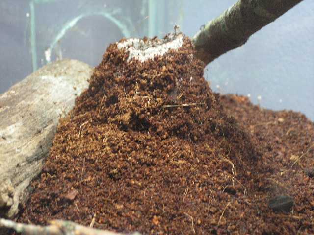 The Ants have 6 plaster moulded nests , with moulded chambers and galleries in them. These are connected by 20 mm clear acrylic piping. :D There is also a foraging tank the plaster nests connect upto. The tank is a woodland desighn and i have moulded a ant hill and the piping is attached to this. The ants exit from this too and it looks cool :P. The ants have not yet explored past the gypsum nest but the workers and all soldiers are greatly swollen with food. 8)