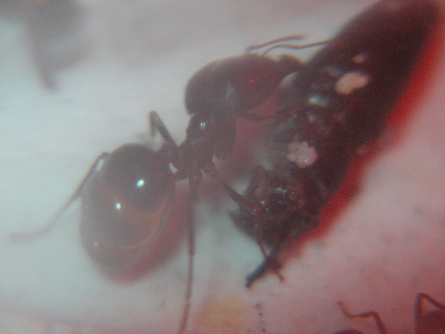 I am just curious and wonder if there may be somthing wrong with my queen , she lays eggs fine but after nearly two weeks they dont seem to hatch , they usally disapear then,, also its interesting to note that the queen that died shortly after arriving with me was alot more stockyier then this queen who was smaller, now the brood that arrived with my rescue attempt workers have turned to pupae and the pupae that had arrived eclosed fine. I did lose alot of it during the few days after transport and alot ended up being dumped in the trash pile the ants had made looking a greyey browny colour.Im assuming the temperture changes during transport was the cause and being neglected while the colony settled in :?