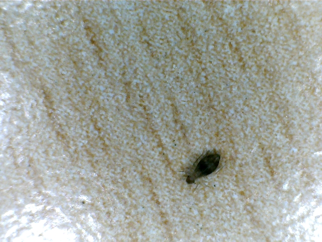 Ich denke nicht, dass das eine Milbe ist, oder? Sieht mir eher nach einer Staublaus aus. Aber sicher bin ich mir nicht.