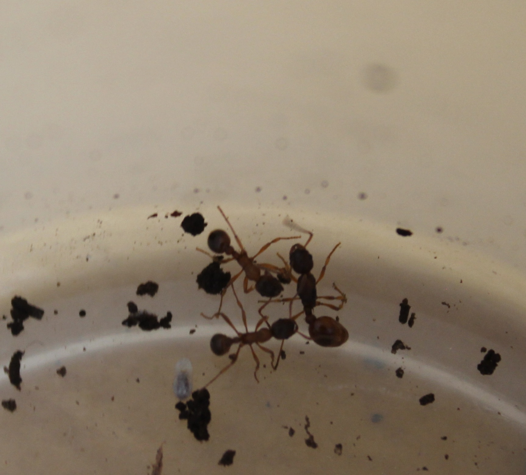 Außerdem konnte ich das Verhalten bei Myrmica rubra beobachten, dass die unbegatteten Königinnen oben im Nest sitzen.