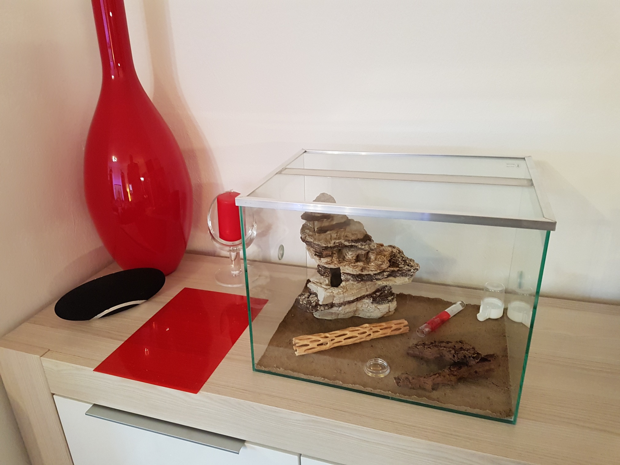 Das Nest konnte ich noch nicht anschließen, da ich mich mit der Menge des Bodengrunds ein wenig verspekuliert habe, aber ich denke sie können noch ein paar Tage drauf verzichten, wenn sie denn überhaupt dieses Jahr noch umziehen.