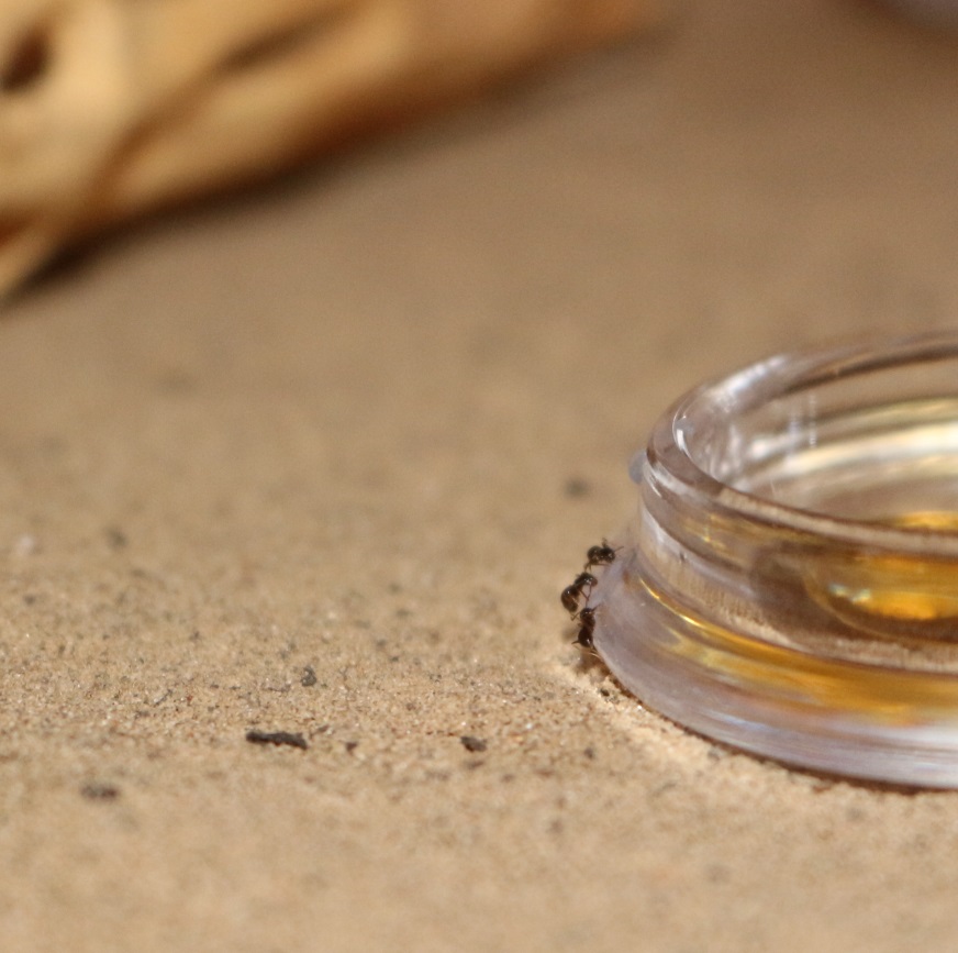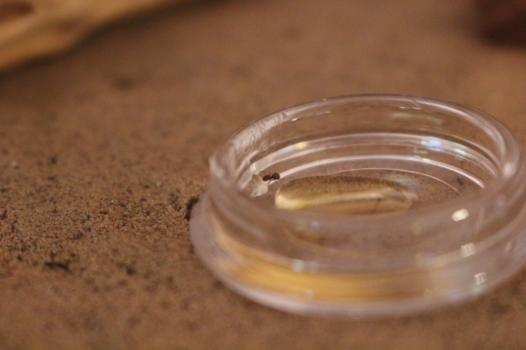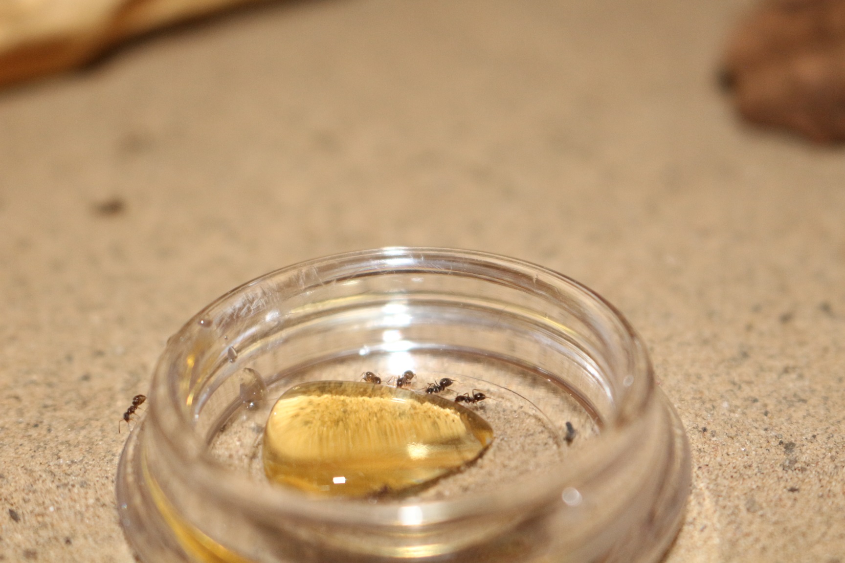 Da ich dem Deckel alleine nicht traue, habe ich noch eine Schicht Paraffinöl aufgebracht und bisher scheinen die Ameisen diese auch nicht betreten zu können.