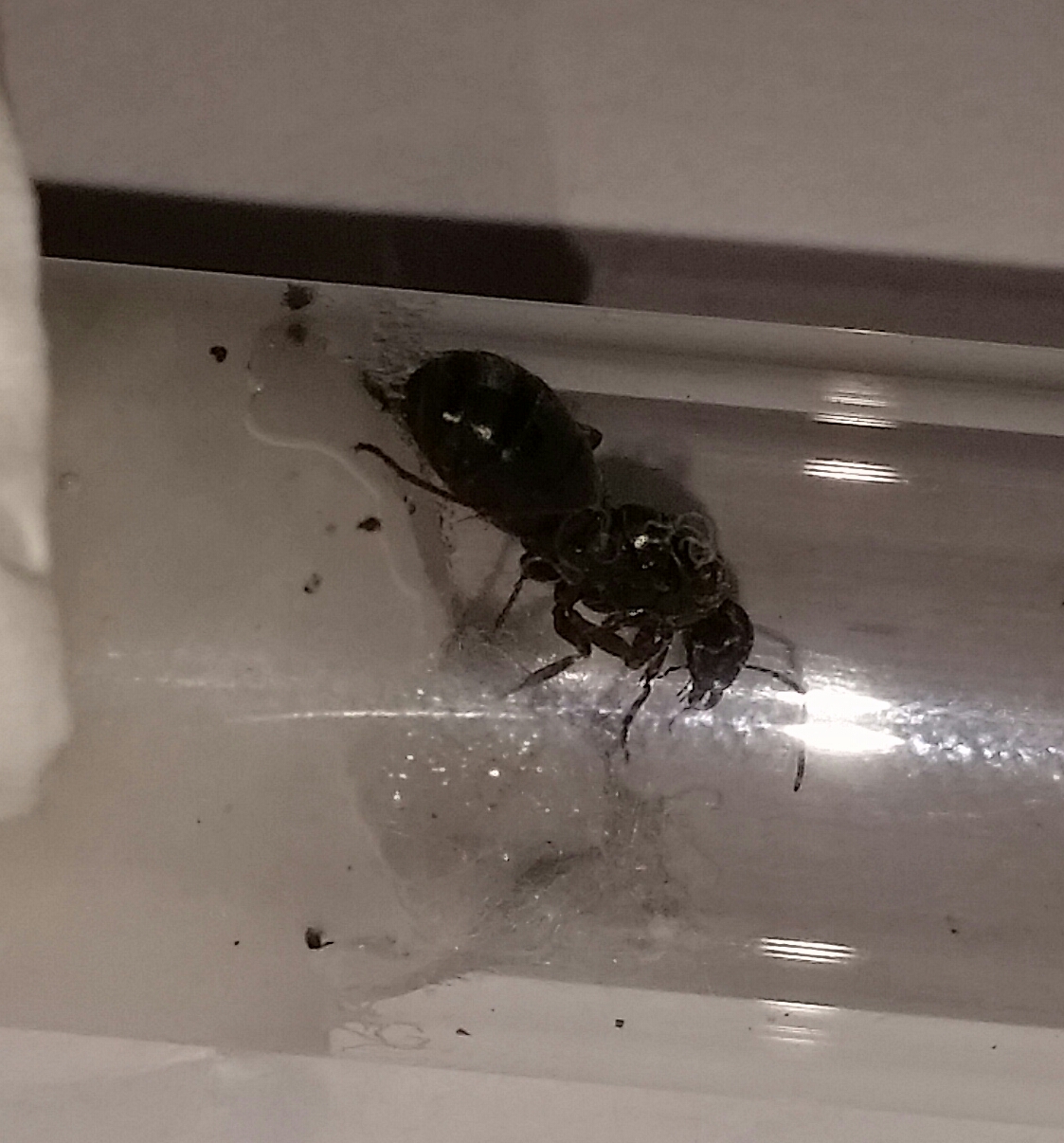 Als ich nach Feierabend die letzten Lasius Niger Gynen beobachtet habe, viel mir eine einzelne Gyne auf dem Hof auf.