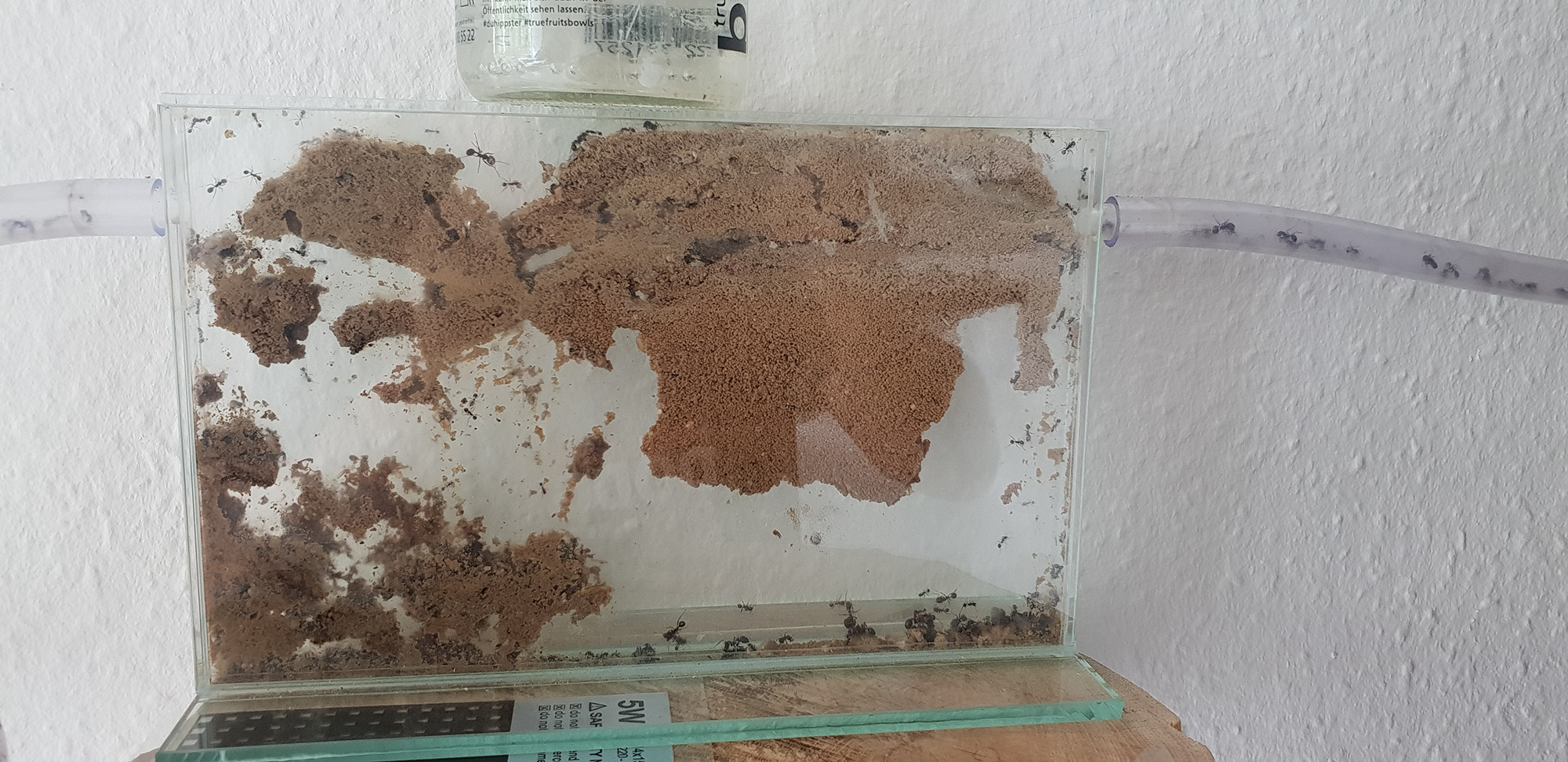 Also eigentlich solle noch genug Platz sein - ich habe 1 Arena und 2 Nester - die mit 2 recht langen Schläuchen (jeweils 1.5m) verbunden sind. und soooo groß ist meine Kolonie noch nicht, die haben noch wirklich bequem Platz. Und Futter liegt in den Kammern und Schläuchen noch einiges herum.