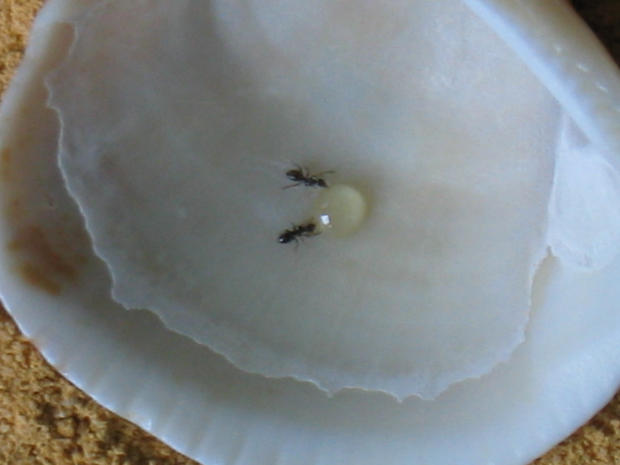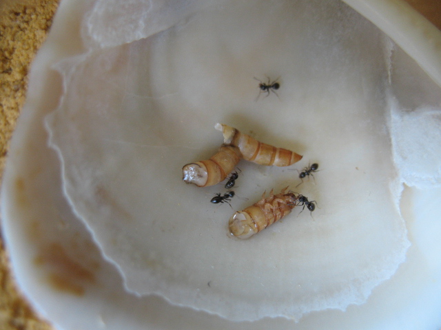 Dann habe ich gestern Abend das Heimchen in die Muschel gelegt und nach unschlagbaren 10 Minuten waren schon 2 Arbeiterinnen an ihm zu gange.Aber ich weiß ja nicht ob sie das als so kleine kolo mit dem Chitinpanzer packen.Wenn nicht schneide ich es halt auf dann können sie es aus hölen.