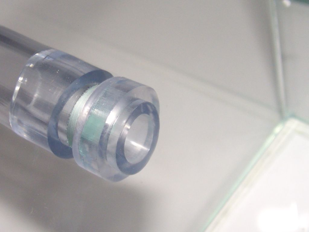 "Acryl Ameisenfarm 25x2x20 cm - Fuss" möchte ich mit "Glasbecken 30x20x20 cm mit 27mm Bohrungen" richtig verbinden. Habe jetzt eine Provisorische Verbindung ausgehend vom Formicarium normal mit einem "Schlauch glasklar 14/10 mm" verbunden und dann mit Plastik und Tesafilm an die 27mm Bohrungen fixiert.