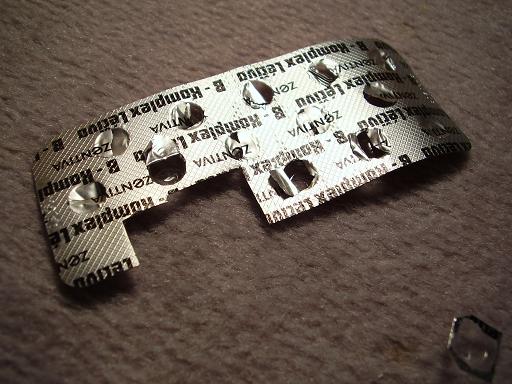 nice idea Skippy, i have to admit i'd be a bit worried abot possible residue chemicals left over from the tablet, although from Sugar coated (sweet tasting and colored pills) or Capsules, this suldnt b an issue....nice :D gona do this for my nu queens