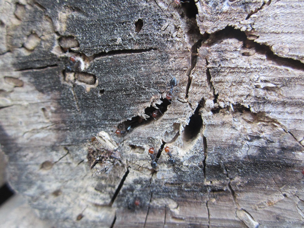 Was das leere Nest angeht, so würde ich eher auf Crematogaster scutellaris bzw. C. schmidti tippen. Keine Ameise in Europa versteht es so gut wie Crematogaster morsches Holz so sehr auszuhüllen, dass nur kaum mehr Papierdicke Wände übrig bleiben.
