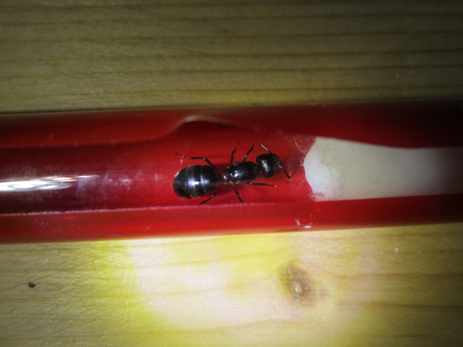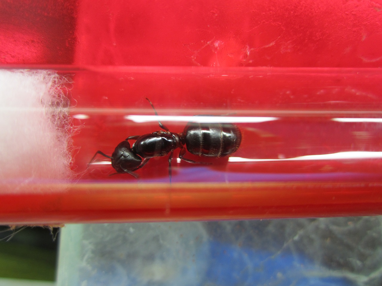 Wenn du vielleicht Bilder von der Seite machen könntest, dann könnte man einfacher sagen, ob es sich um eine Camponotus herculeanus oder Camponotus ligniperdus Gyne handelt. Obwohl 1,7cm schon verdammt groß für eine Camponotus herculeanus Gyne wären.