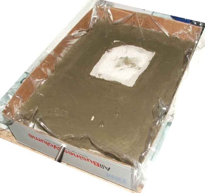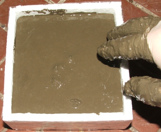 - Damit wäre die Form fertig, für das Anrühren des Zements sollte man besser einen Handschuh anziehen, der flüsig Zement wird sehr basisch, nichts schlimmes, wenn man es sich danach schnell wieder abwäscht, aber doch äußerst lästig und ungesund. ;-)