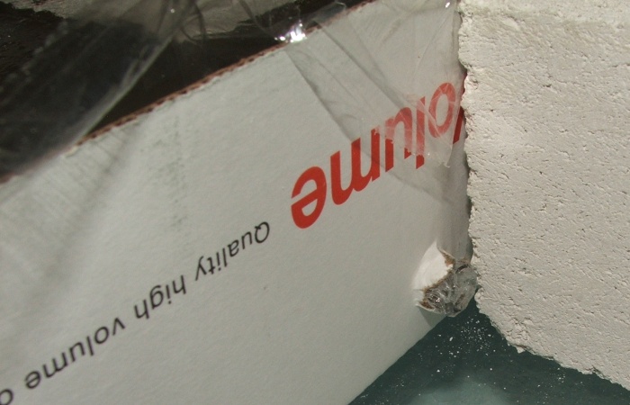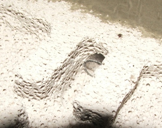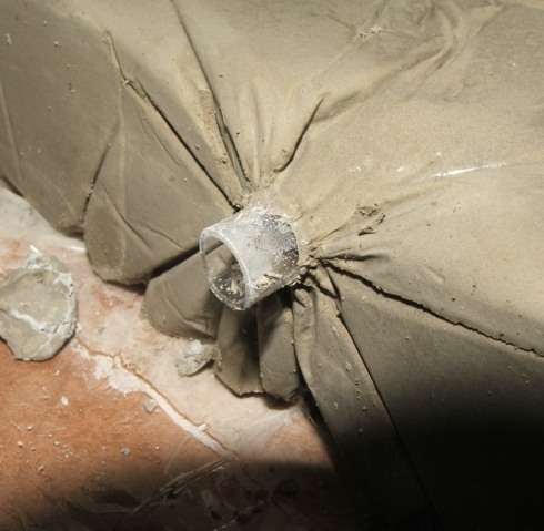 - ...da kommt es raus, um die Styroporform ist Tesafilm zum Abdichten und zum Befestigen angebracht.