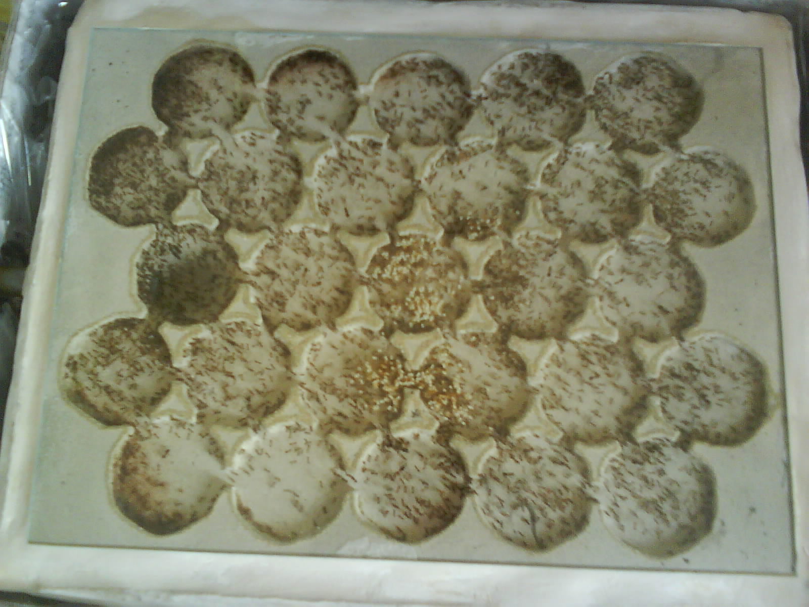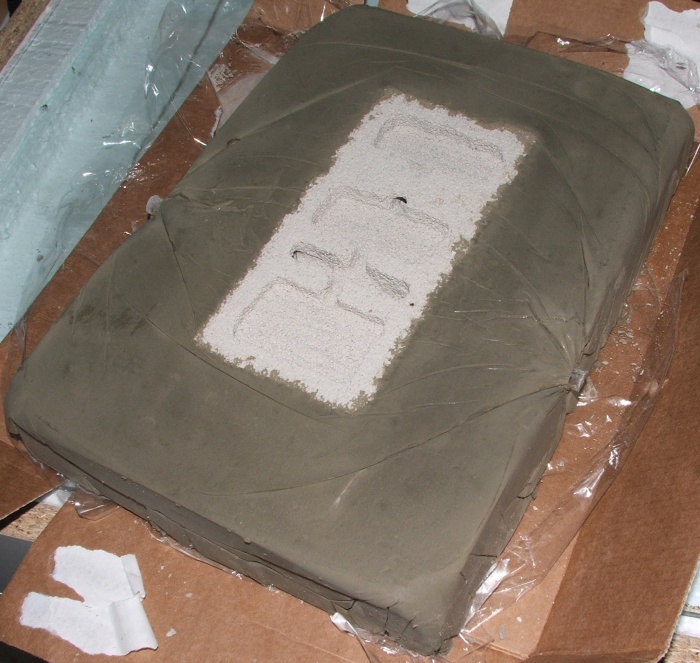 - ...dann vorsichtig die Masse glattklopfen (Aufpassen, dass sich der Ytong in der Form nicht verschiebt, oder die Scheibe), dabei kommen nachträglich noch einige Gasblasen raus.