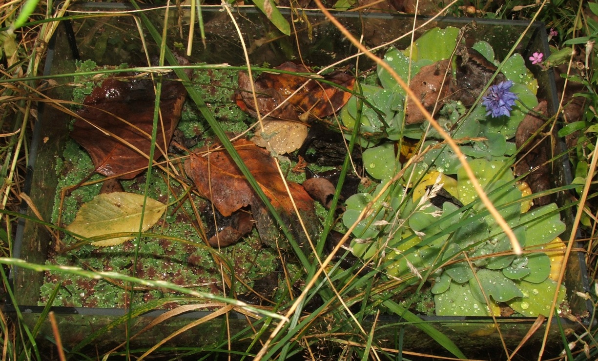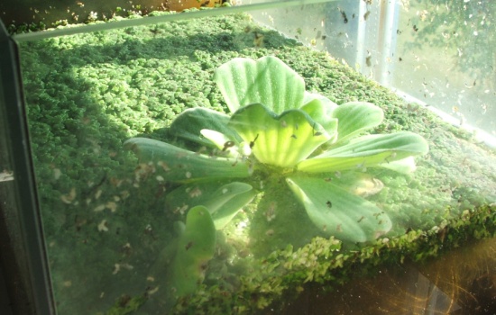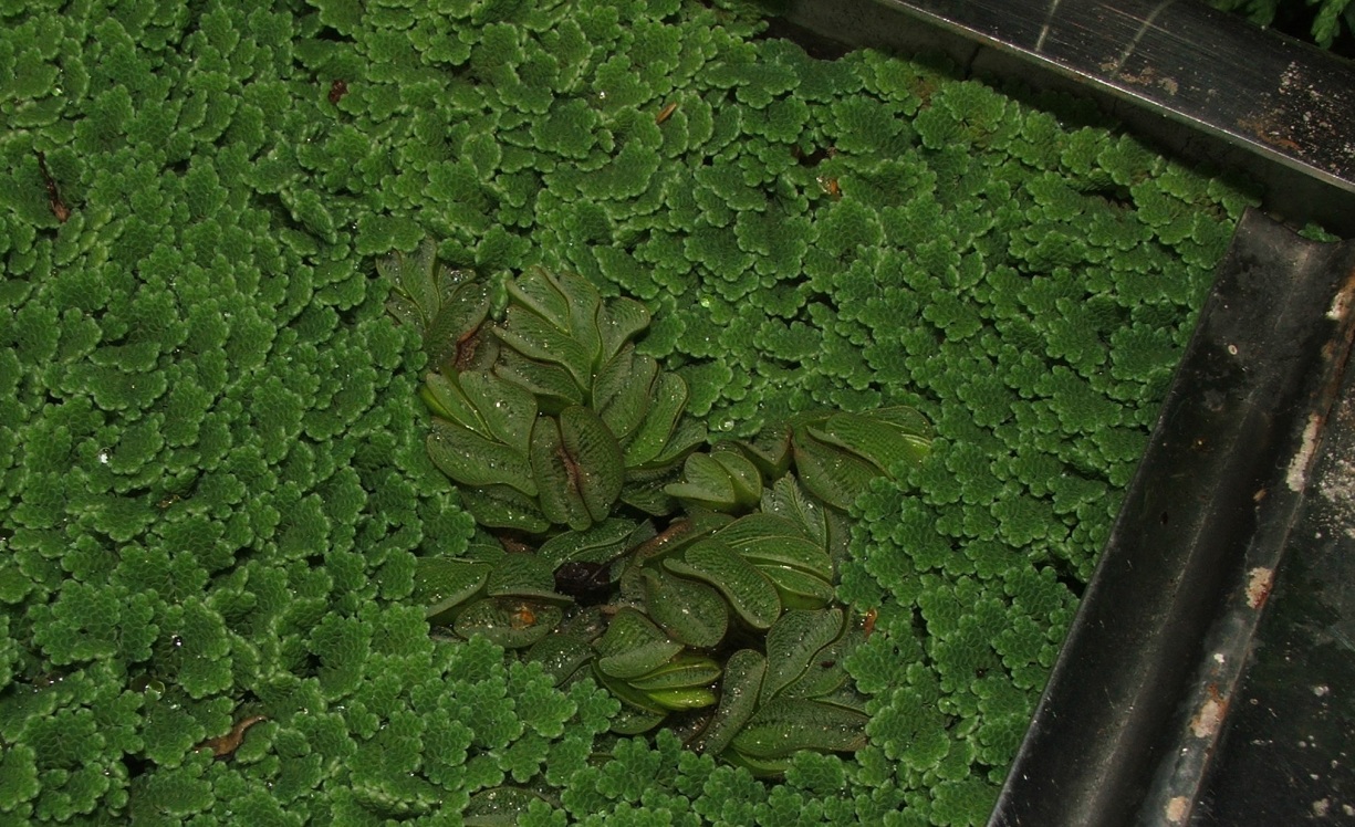 -eine einfachere, aber bessere Methode ist die von Becken drei, hier handelt es sich einfach nur um einen Bodengrund, welcher unter Wasser liegt und so unerreichbar für die Ameisen ist, das Wasser wird bedeckt von Schwimmpflanzen wie Wasserlinsen, Algenfarn, Wasserfarn, Wassersalat, Wasserhiazynten etc., die kleineren Schwimmpflanzen bedecken das Wasser und verhindern ein Ertrinken, die größeren Pflanzen sind die eigentlichen Pflanzen, welche blühen oder Läuse tragen könnten, hier sollte man unbedingt eine luftige Abdeckung wie Abd. 1 verwenden, wegen der Luftfeuchte,