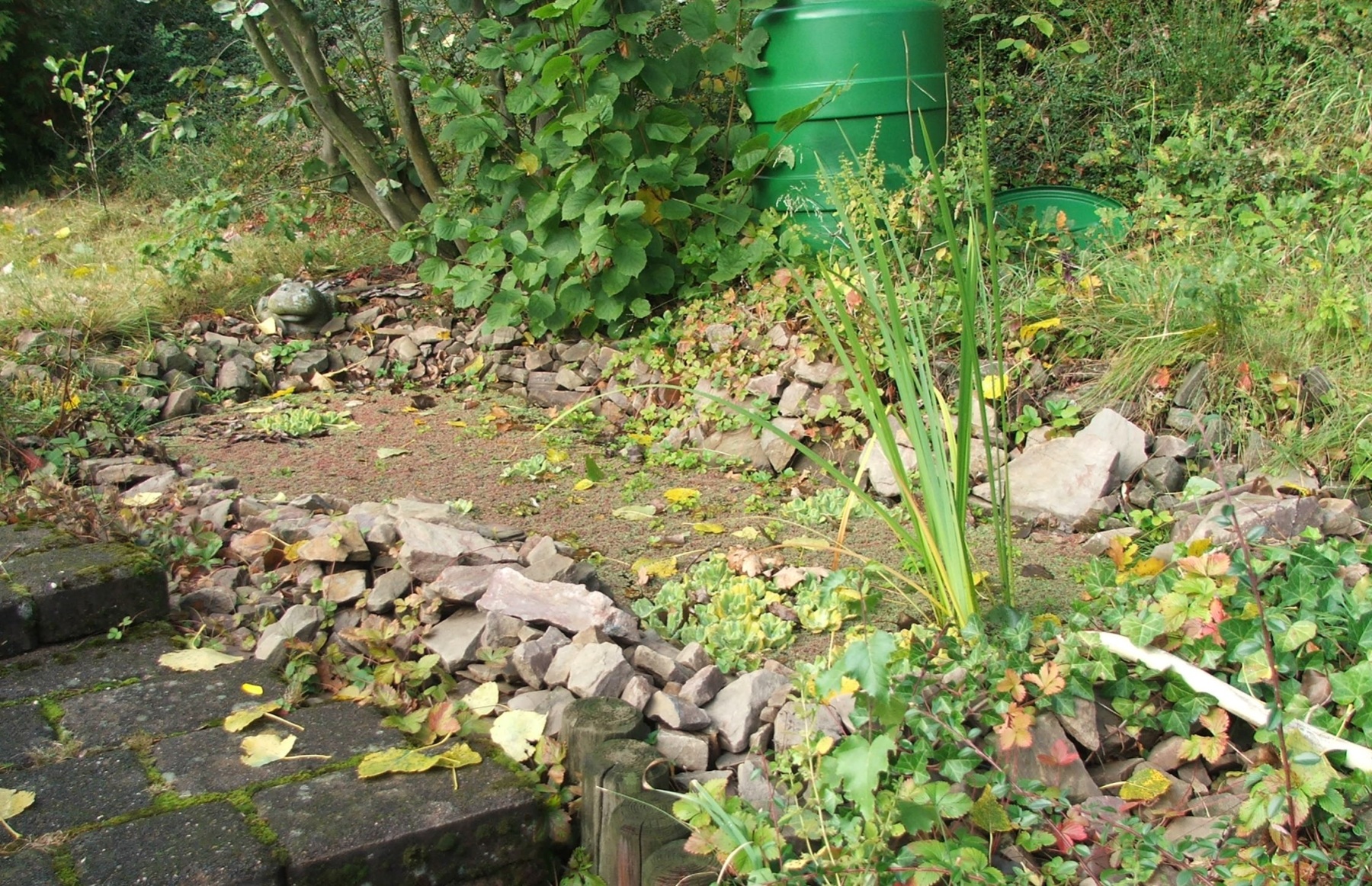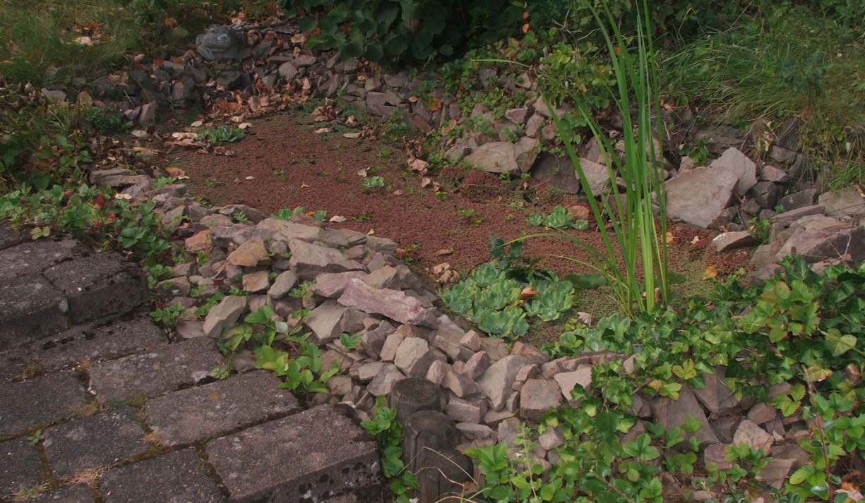 bei Becken vier lässt man über ein Loch, welches mit Watte gesichert wird, eine Pflanze in das Becken wachsen, wie Efeu oder die für Ameisen nützlichen Zaunwicken,
