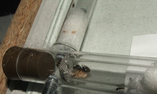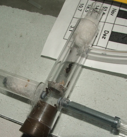 Nächstes Jahr werde ich mir einige Arbeiterinnen von Lasius sp. Kolonien in der Nähe besorgen und sie so über eine gewisse Zeit weisellos halten, dann fange ich eine Königin und probiere mit dem Gerät eine Adoption, zunächst Gewöhnung, dann in der Winterruhe die Zusammenführung, vielleicht macht ja hier der eine oder andere mit!?