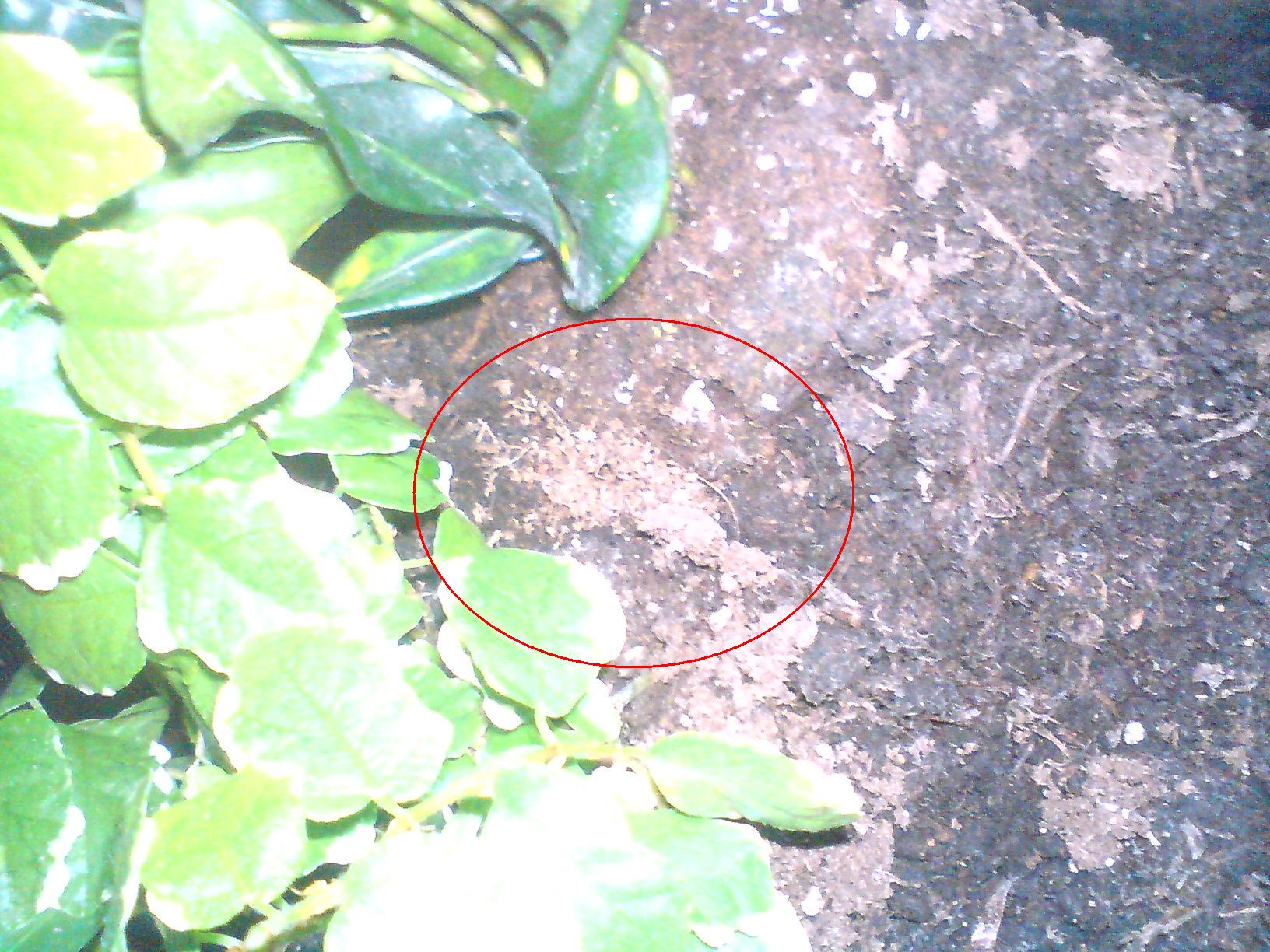 ich habe ihn gestern hinter den pflanzen entdeckt, er verbreitete sich im torf.