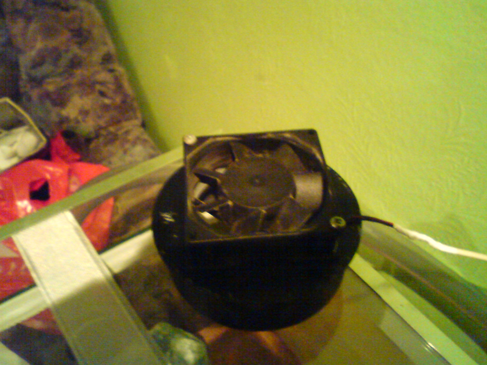 geplant wäre ein schutz aus fliegengitter, damit kein entkommen und den lüfter mit doppelklebeband fixiert (an meiner 27mm bohrung). ein 4 volt netzteil reicht und der lüfter schickt