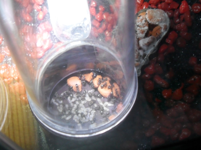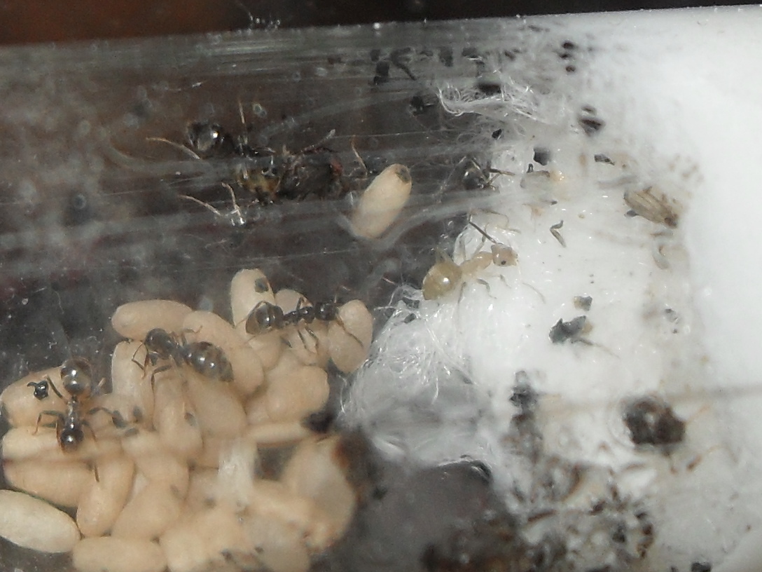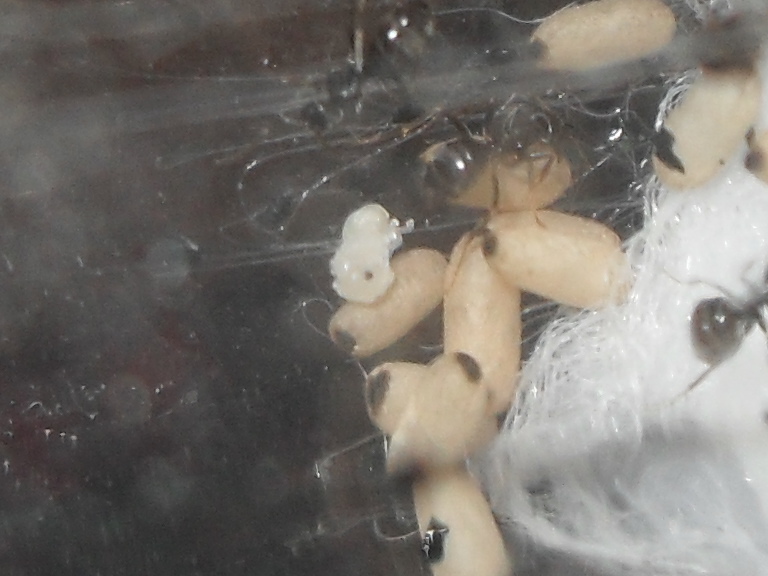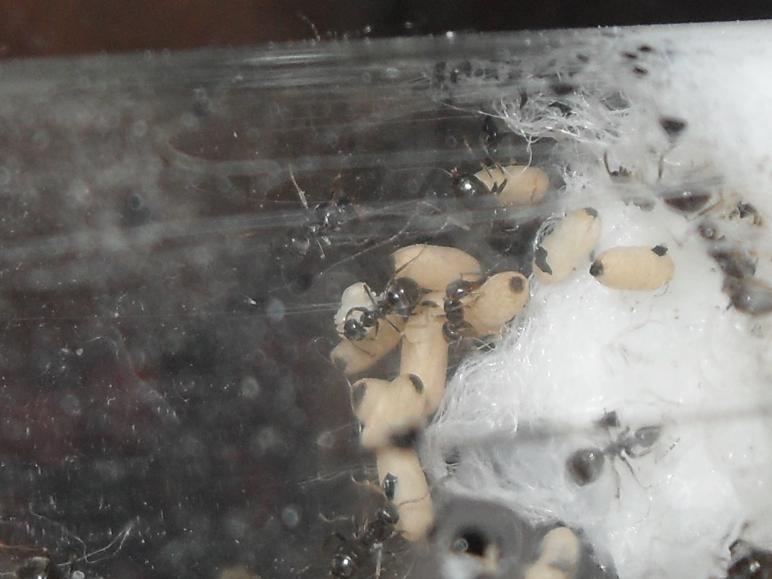 Die Kolonie hat einige viele Eier, ein paar Larven und 7 oder 8 Puppen. Müsste also demnächst Nachwuch geben. :P