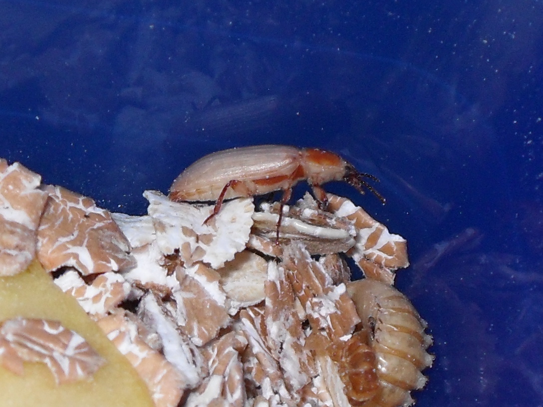 Jedenfalls der Mehlwurmkopf wurde als lecker eingestuft und in das Reagenzglas gezerrt. Der Rest vergammelt jetzt vor sich hin in der Arena. Naja - spätestens Übermorgen landet das Mehlwurmfrikassee aber im Müll :grin: