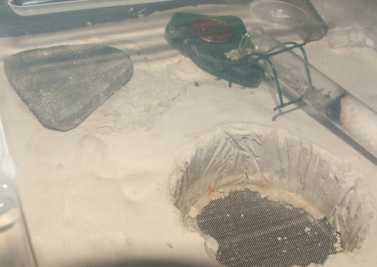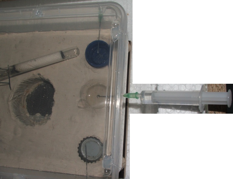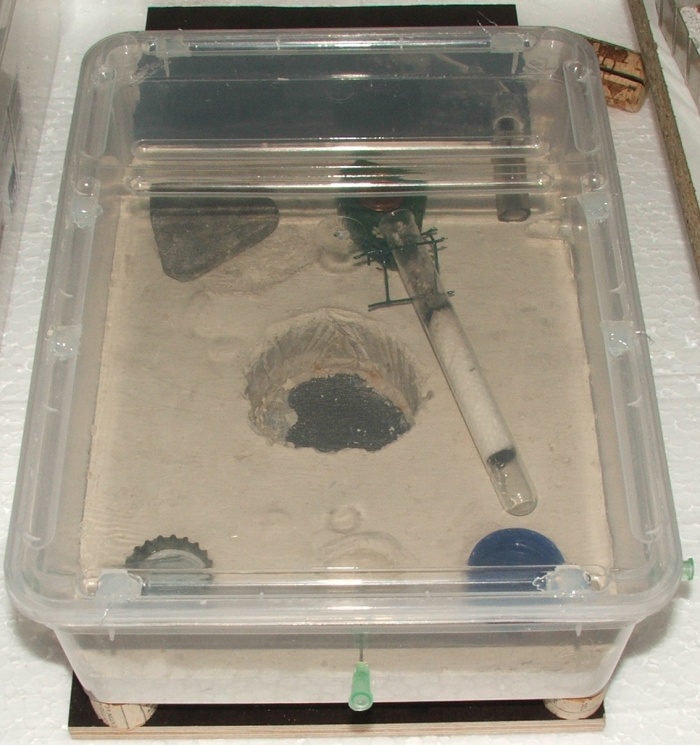 Kurz zur Arena: wie im Bild zu sehen, kann man sie leicht von außen über eine Spritze befeuchten, wann die Lasius sp. das Feld räumen müssen?