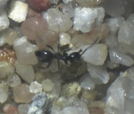 Ich benutze sie als Kanarienvögel, in diese Arena sollen später ja Messor barbarus einziehen, da diese auch noch gründen müssen, kommen zunächst die Lasius sp. hinein, so kann ich sehen, ob die Arena ungiftig ist und eventuelle Löcher im Ausbruchsschutz kann man so auch erst einmal sehen!