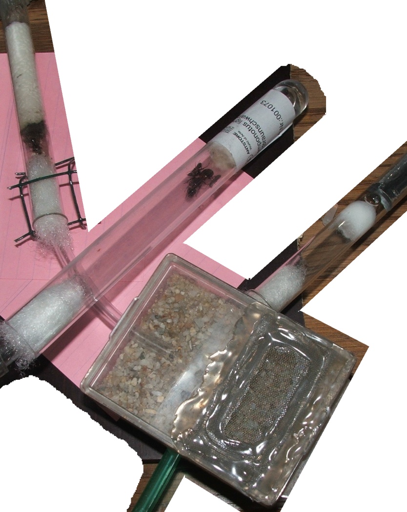 Die Königin und einen Großteil der Arbeiterinnen habe ich in das neue Nest verfrachtet, den Rest der Arbeiterinnen und die Brut in die Arena.