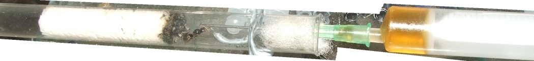 Edit2: Gerade eben konnte ich schon die erste Arbeiterin das neue Territorium (Arena + etwa einen halben Meter RohrSchlauch) erkunden sehen, hier tritt ein kleiner Konflikt zwischen Orientierungssinn und Pheromonspur auf: der Orientierungssinn sagt, wir haben uns gerade gedreht und laufen in die Richtung, aus der wir kamen, aber wenn wir uns umdrehen, sagt das Pheromon, dass wir aus dieser Richtung kamen... nach etwas Verwirrung scheinen sie jedoch klarzukommen...
