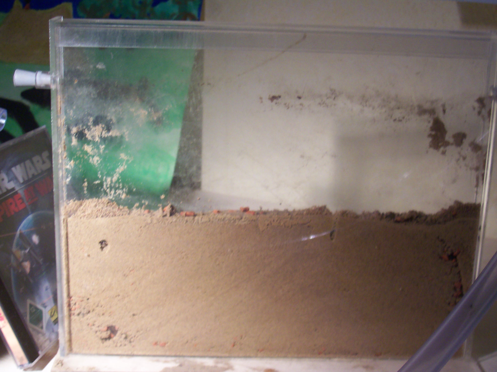 Bei meiner ersten Gyne habe ich nicht besonders guten einblick(kann nur ihre Gaster sehen). Ich hatte leider kein Reagenzglas zur Hand aber diese alte Farm, deswegen mussten sie darein: