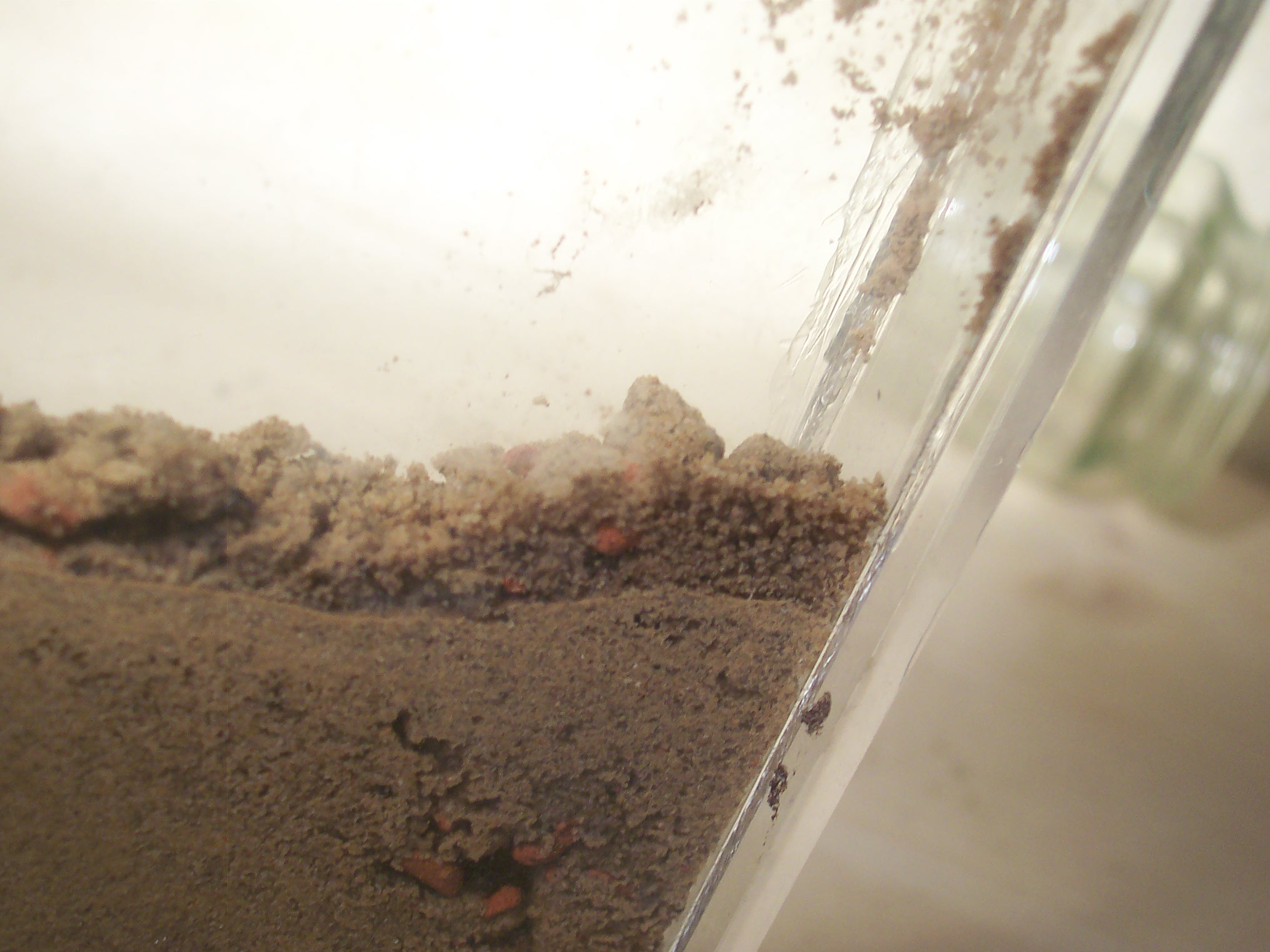 Die zweite hat einen, etwa 4cm tiefen, Gang gebaut aus dem sie auch fleißig weiter arbeitet.