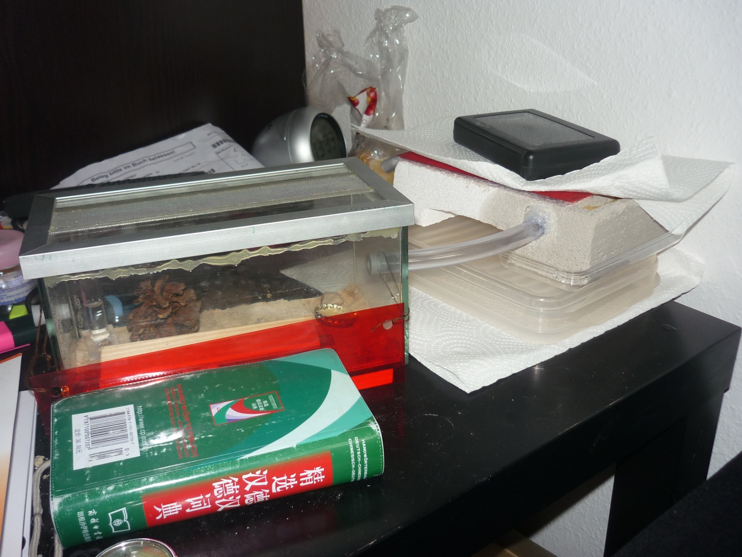 Seit Freitag Nacht bekauen sie im Nest einen Mehlwurm, leider hab ich das Reinschleppen verschlafen. Beim Reinlinsen konnte ich sehen, dass es auch etwas Brut gibt, zumindest zwei Larven wurden gesichtet. Die Grande Madame macht sich sehr breit und bietet keine besonders gute Einsicht auf ihren Nachwuchs. Am Wall im RG wird auch fleissig weitergebaut und ich, ich baue an meinem ersten Ytong-Nest. Momentan suche ich noch nach der einfachsten und günstigsten Variante, die Anschlüsse dicht hinzubekommen, falls jemand Rat weiß, möge er mir im Diskussionsthread schreiben.