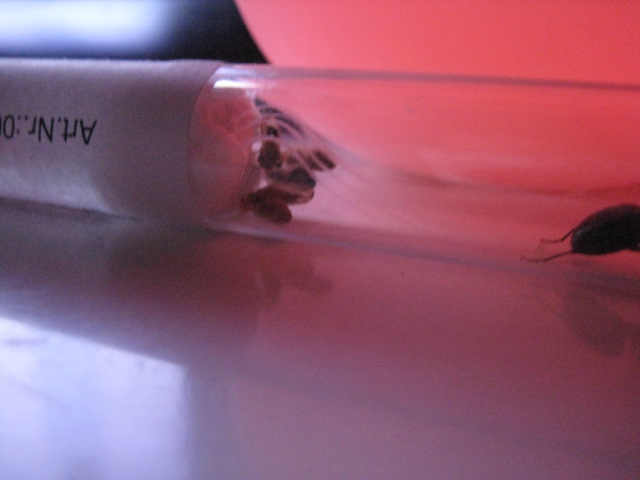 Die Königin sitzt Putzmunter in ihrem Reagenzglas und wurde sehr Regungsaktiv als ich sie störte. Ansonsten sitzt sie schützend neben ihrem