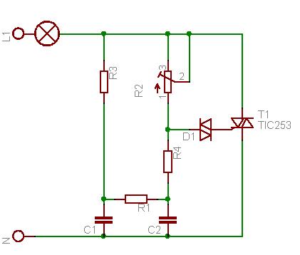kann. Um die Lampe zu erhellen / zu verdunkeln wird ein Dimmer in Form einer Phasenanschnitt-