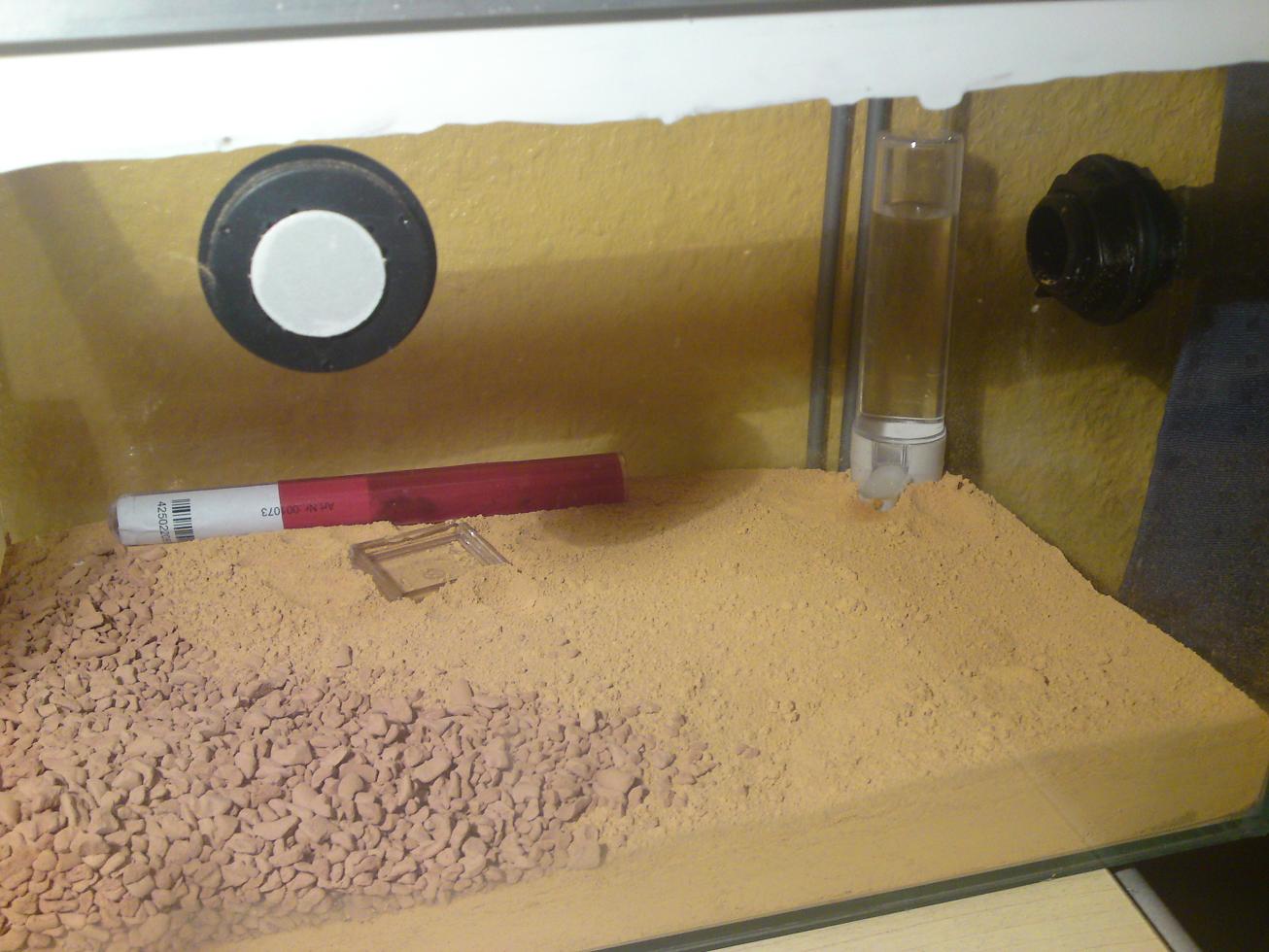 Habe gestern den gesamten Formicarienboden der Arena ordentlich durchtränkt. Die feuchtigkeit sollte