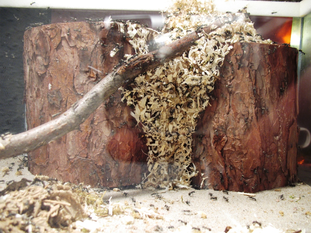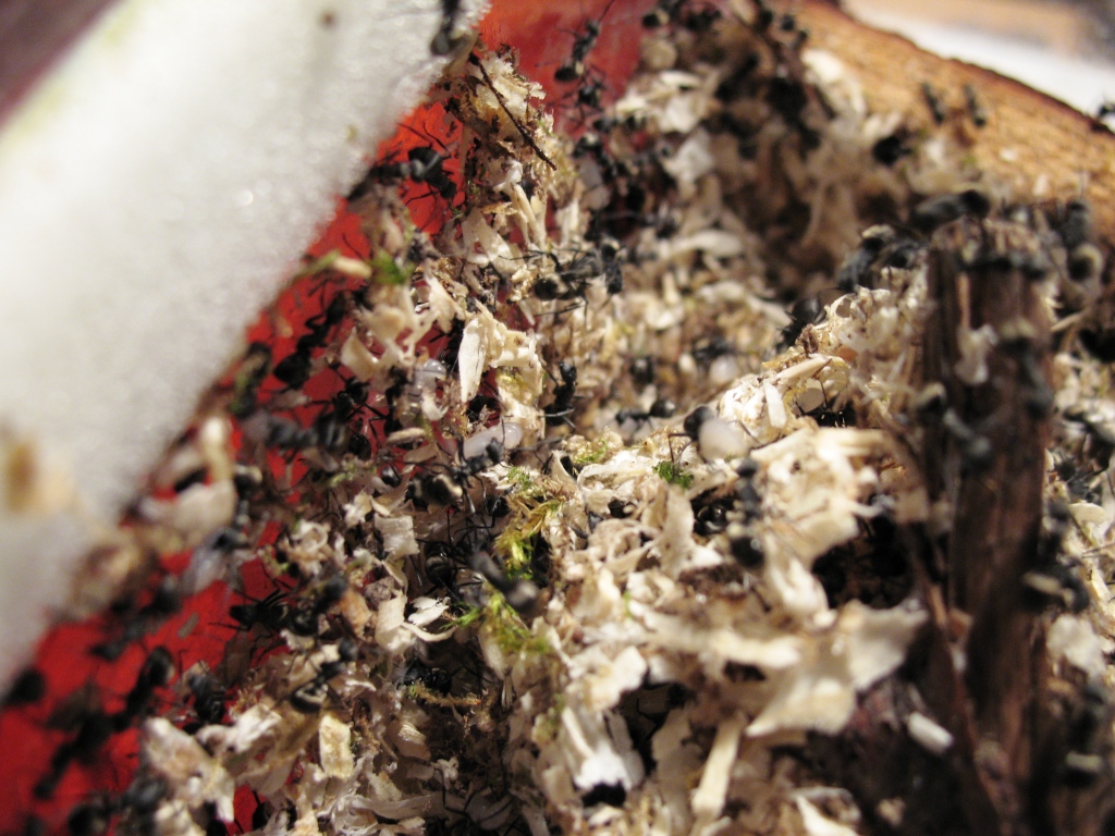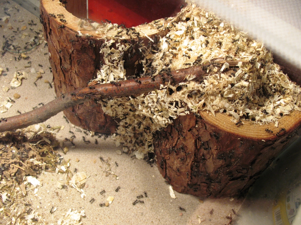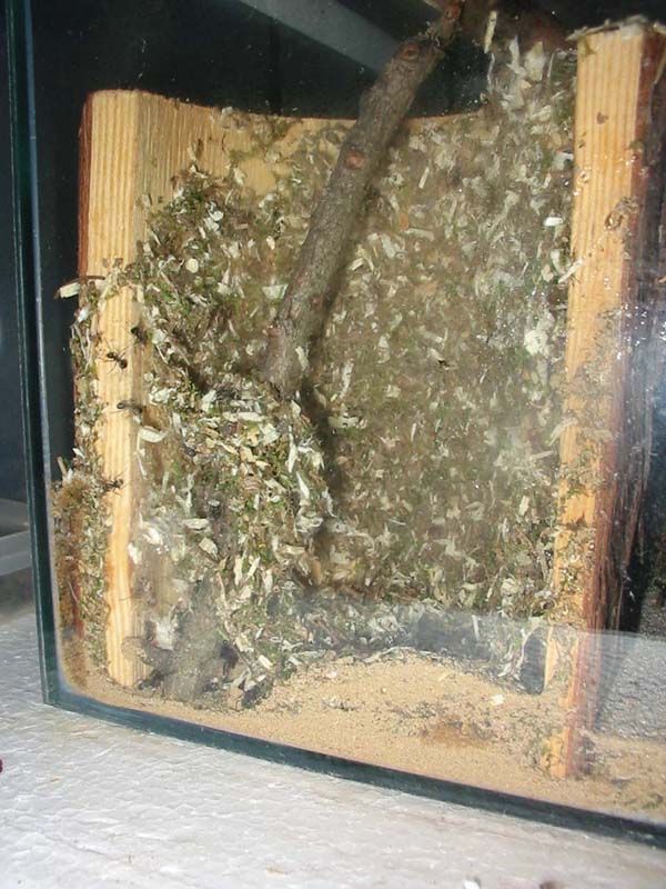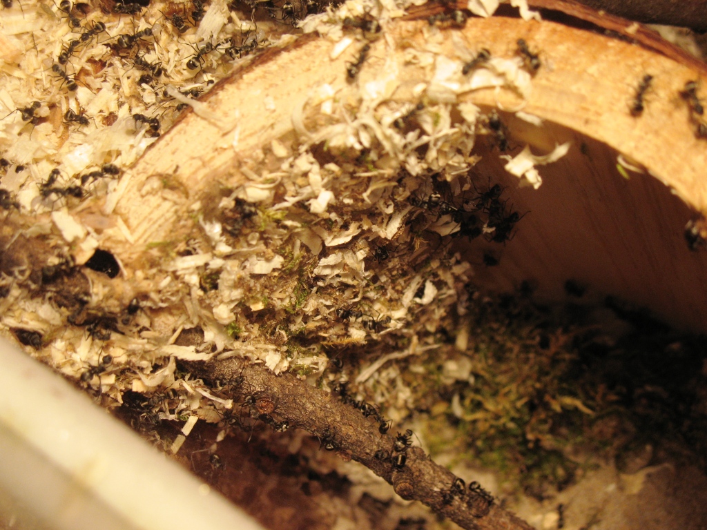 Zunächst verkrochen sie sich einige Arbeiterinnen in das neue Nest, was mich fröhlich stimmte. Jedoch zogen sie im Laufe der Tage in ihr altes Nest zurück.