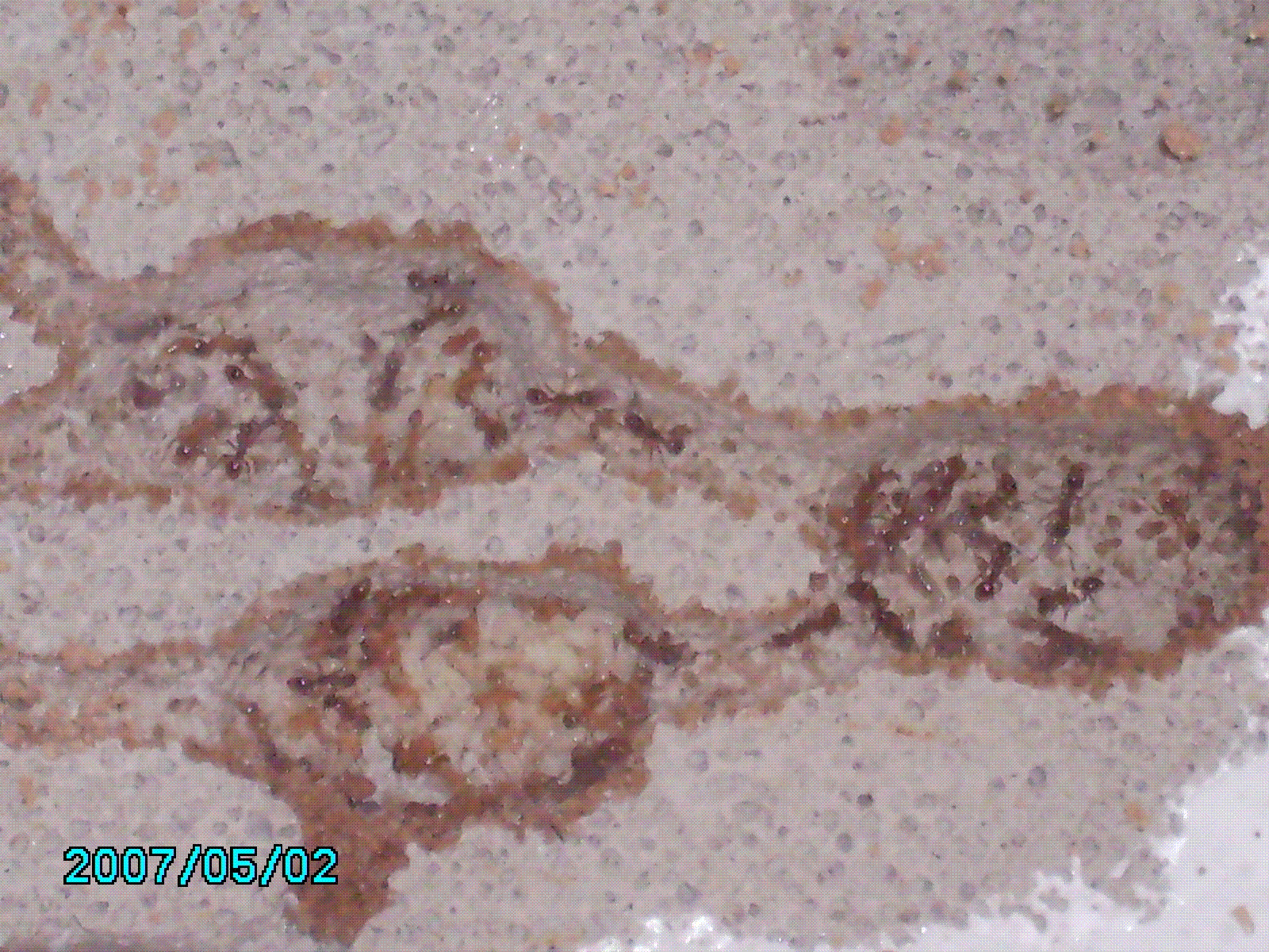 Die Kolonie lebt halb in einem Erdnest, halb in einem Ytong.