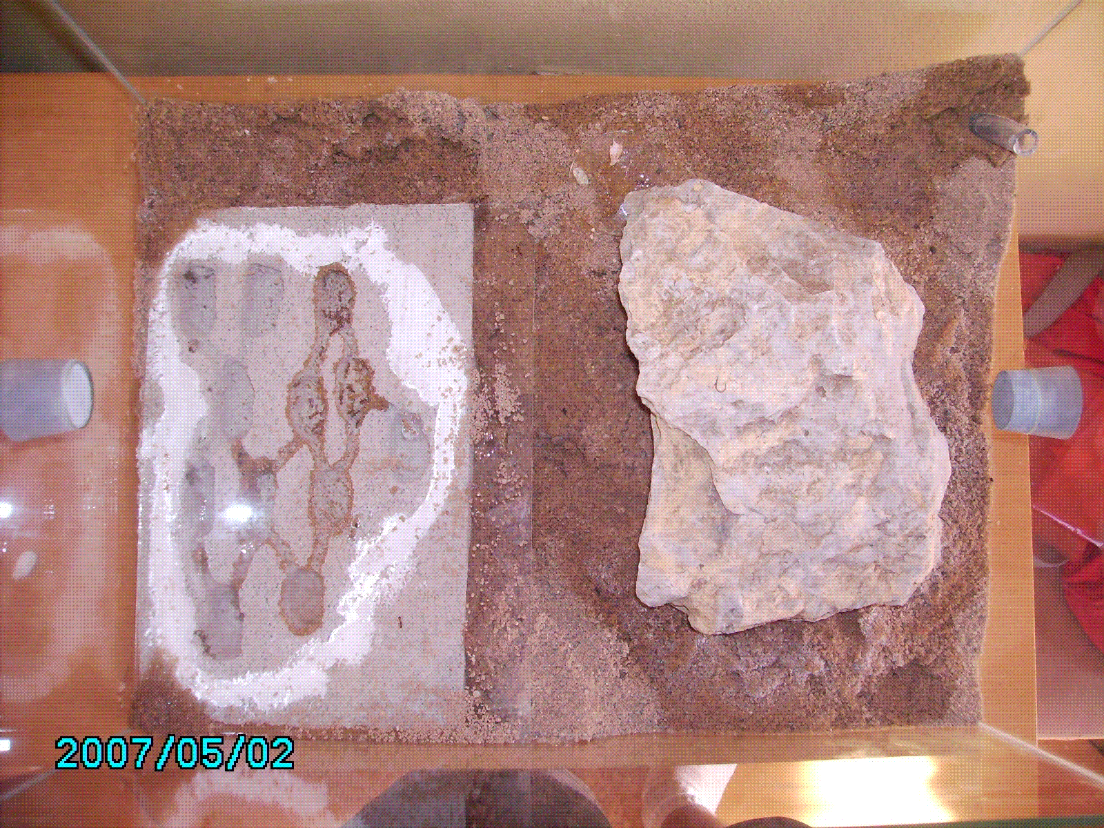 Das gesamte Formicarium, an der Glaswand sieht man einige Gänge, sie wurden quasi "zum spass" angelegt ;-)