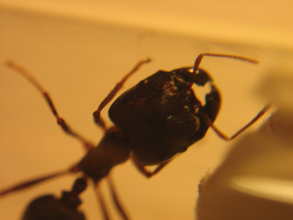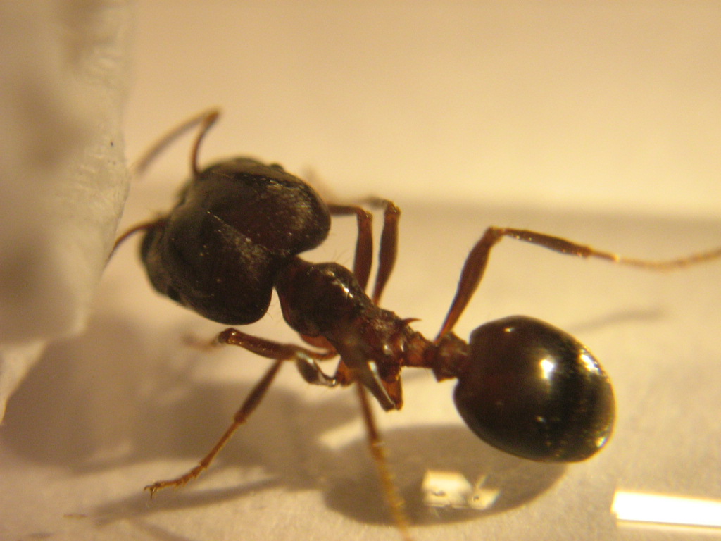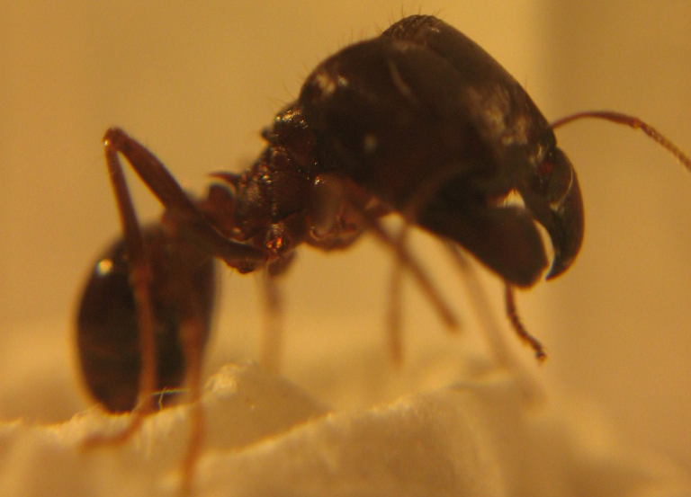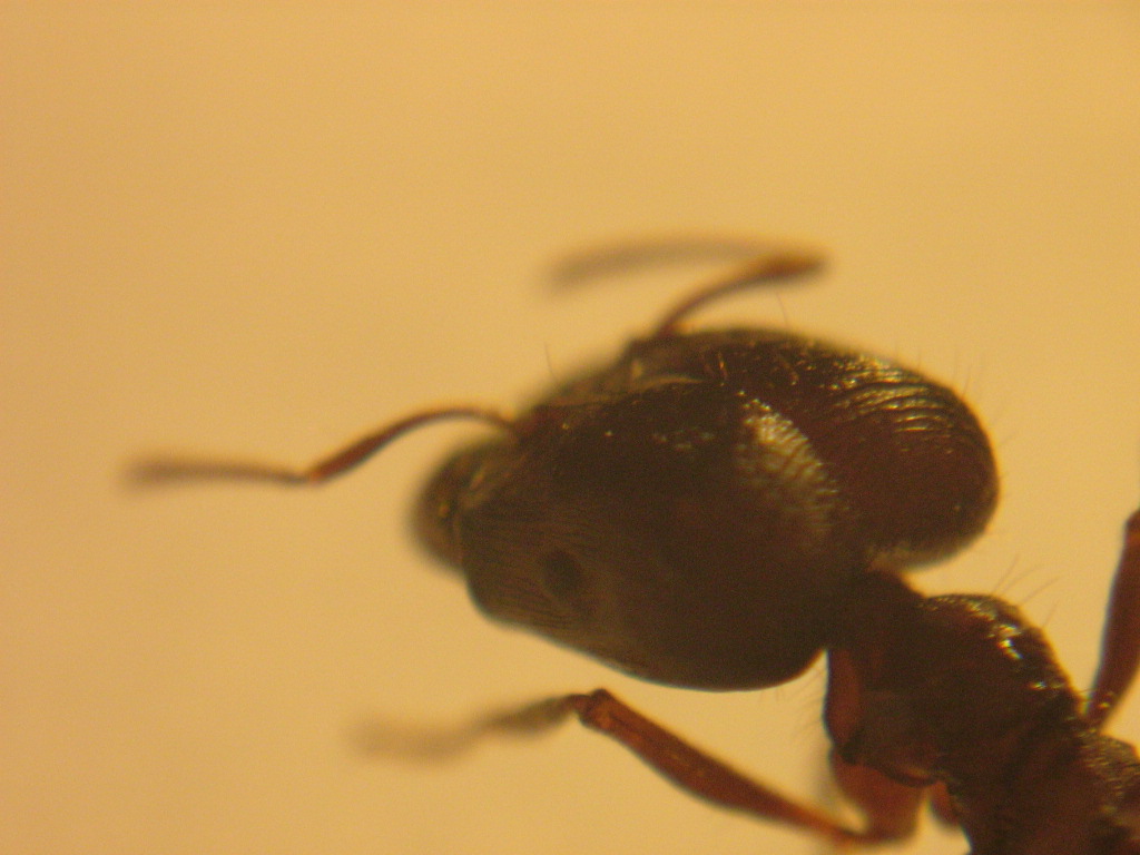Zum Vergleich noch 2 Bilder einer unbekannte Lepto- oder Temnothorax, die ähnlich groß sind wie die Arbeiter von Pheidologeton diversus - die aber wesentlich ruhiger sind,und sich daher vernünftig ablichten lassen!