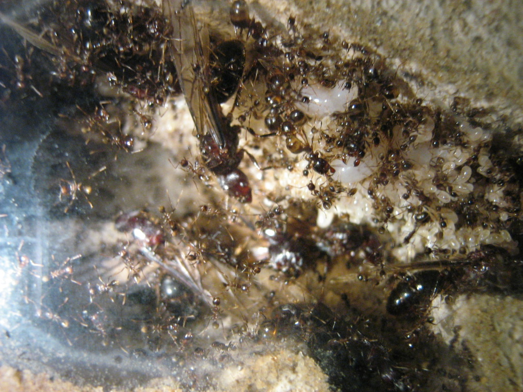 The first few pictures of the first thread show the main chamber. On the second and third pictures, there are some of the approximately 15 young, unfertilized Queens. Fourth picture shows one of the crickets during feeding time. On the four last pictures i tried to get a good shot at a medium sized soldier, giving an idea of the hairs on its body, the abdominal spikes and the structure of the head.