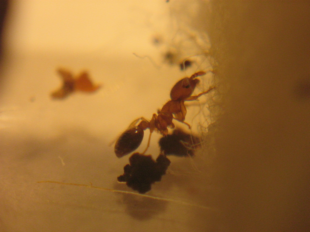The last two pictures are for the comparison of picture quality, showing an unknown Lepto/Temnothorax, about the size of the Pheidologeton diversus workers - the difference beeing, they are a lot calmer, allowing to take a decent picture of them and not get the blurry results as seen on the Pheidologeton soldier.