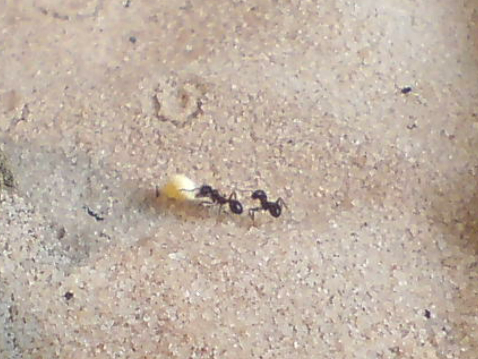 Worker taking seed back to the nest, looks like the worker stole the seed form the other worker lol