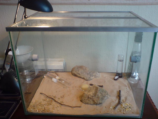 Here the whole basin, i wanted to buy a heat mat but the pet shop was closed... So i only got a lamp for now