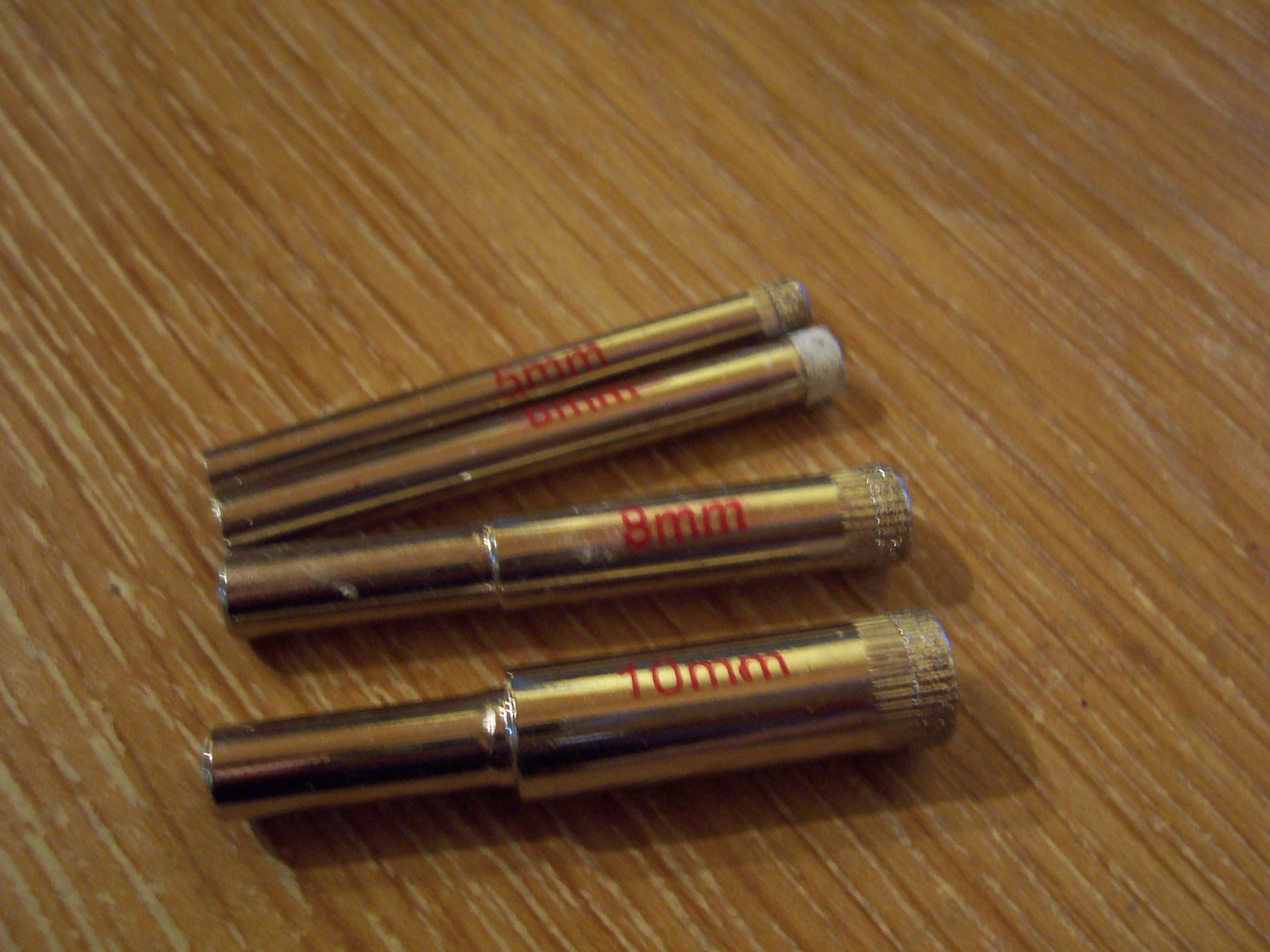 Zu beachten ist beim Bohren eine gute Kühlung mit Wasser und wenig Vorschub und Drehzahl. Am Anfang Schräg ansetzen, sonnst eiert die